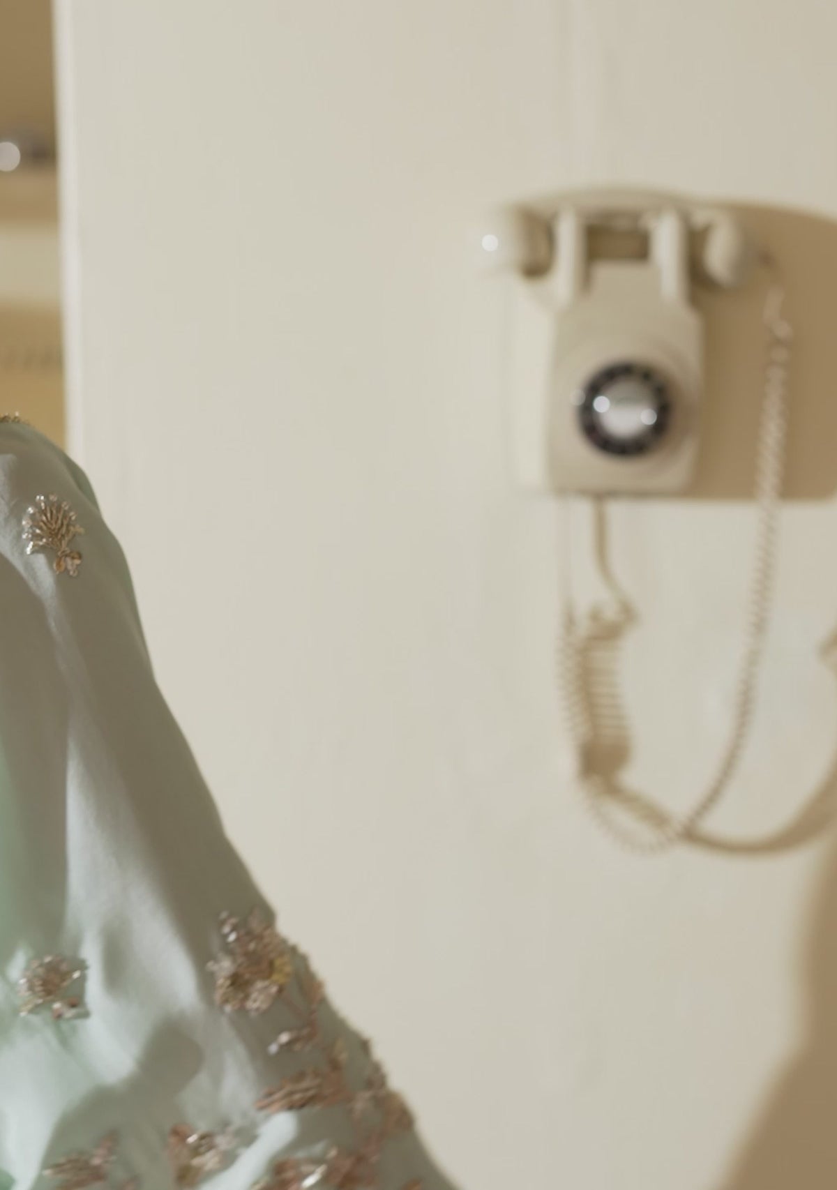 Firouzeh, the mint tassel silk oversized kurta comes with gold and silver handwork detailing perfect for the spring/summer season. It is paired with a matching shalwar with gold and silver edgings.